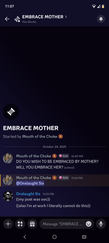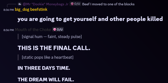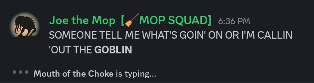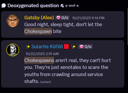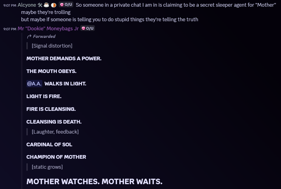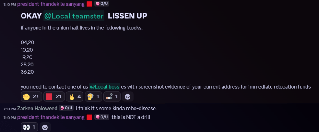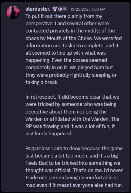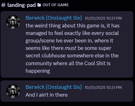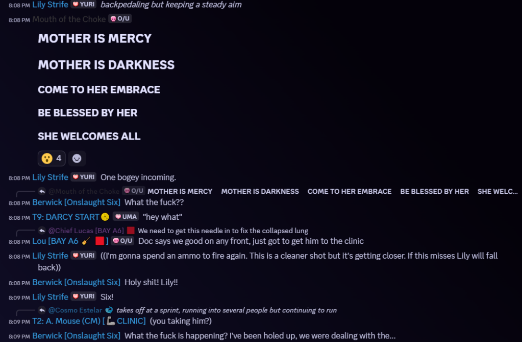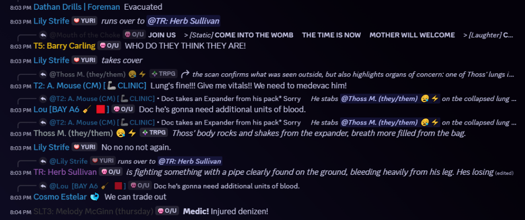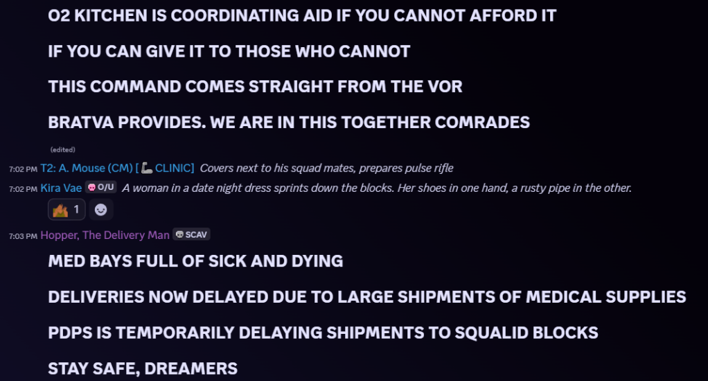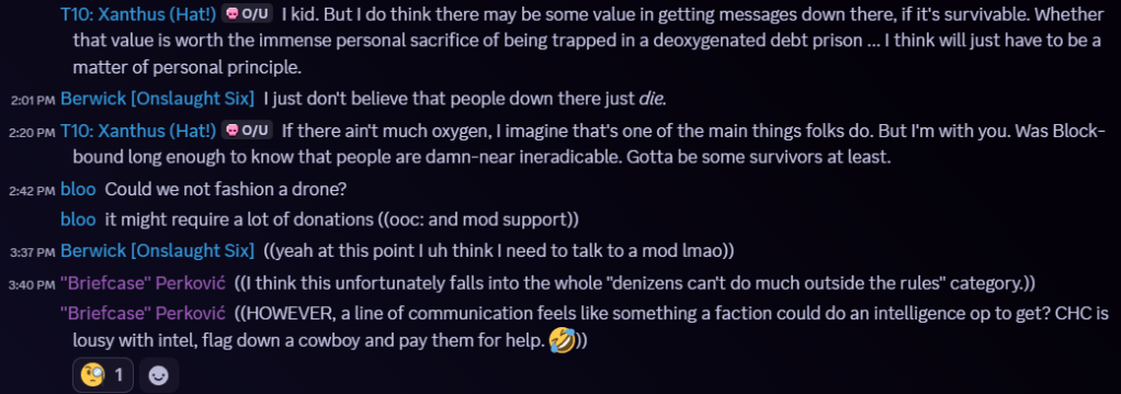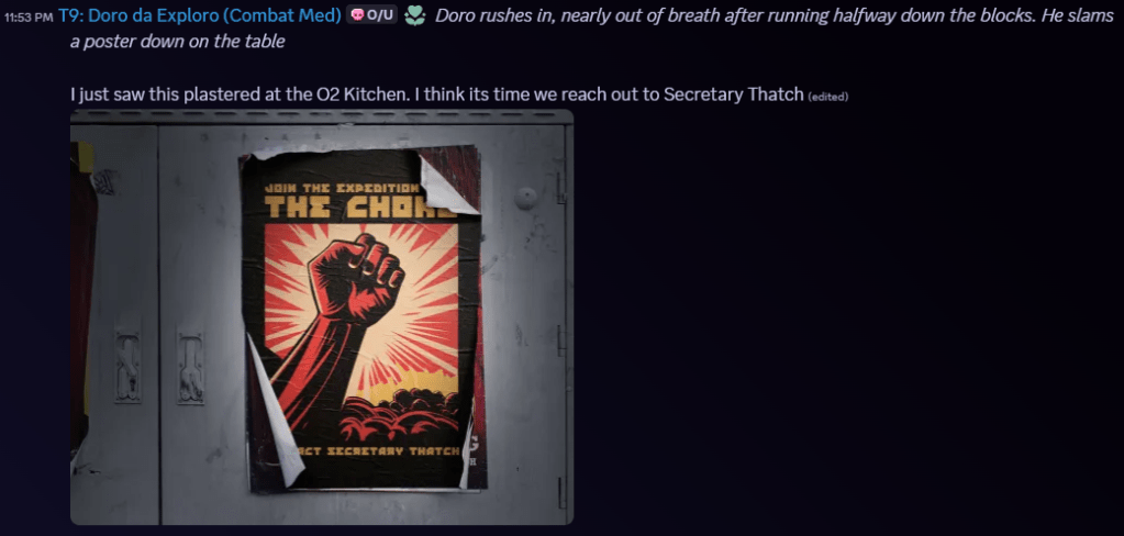 This post is about an incident that occured in Over/Under, a Mothership MMORPG run entirely in Discord. If you don’t care about that, safely ignore this post.