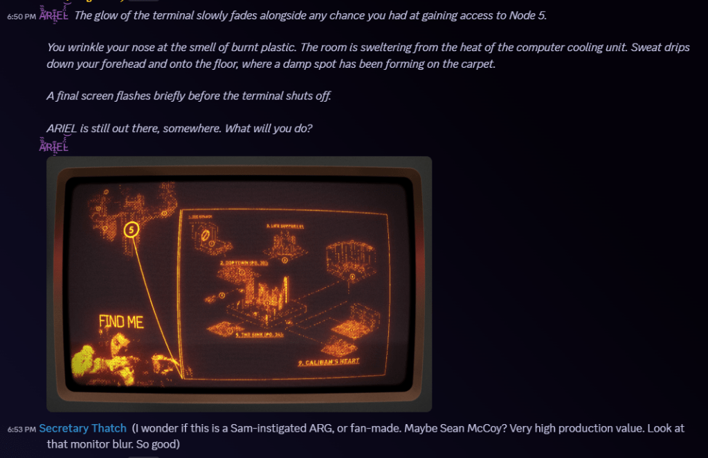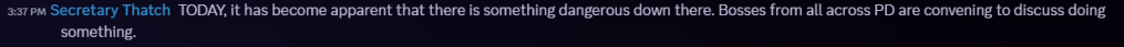 UNSOLVED MYSTERY: How do the bosses know the threat existed in the first place to ask this question? Do they believe, at this point, that the threat is Ariel’s countdown? We may never know. If you have more information, message me on Discord.
