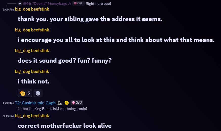 Over/Under is still ongoing. This post may contain actionable intel. In addition, this is all from my perspective, perception, and mostly publicly-available posts on the server. I may get things wrong or portray things in the wrong light. In this post, I am not doing so as a manipulation tactic or any attempt to push a narrative or agenda. I am simply fallible.