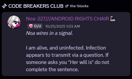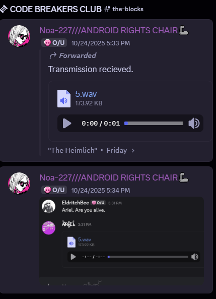 Ariel posts this at 1127pm local on 10/23 in Codebreakers Club.