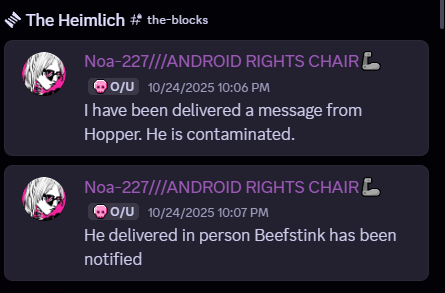 Somewhere along the line, it becomes clear that it’s not just living in the blocks but communicating via private messages or private threads that triggers the infection. I really know this because I have a core piece of evidence: